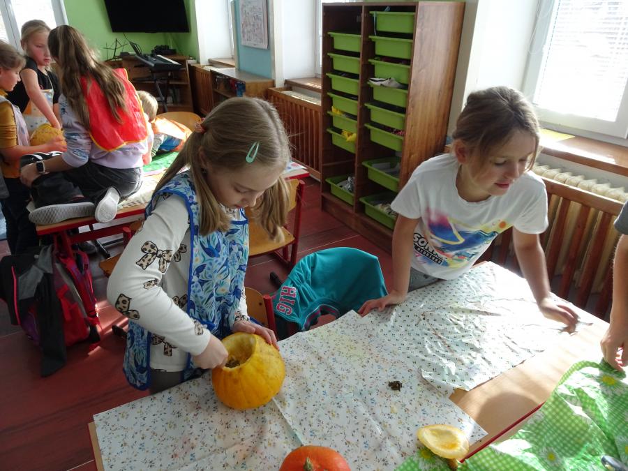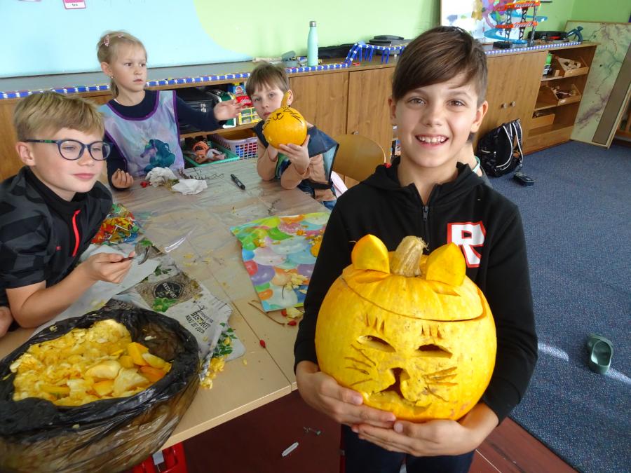 V úterý 21. října 2025 proběhl v dopoledních hodinách projektový den a dýňové tvoření. Děti se seznámily s různými druhy dýní a po rozdělení do skupin se pokusily vytvořit dýňovou výzdobu. Práce jim šla krásně od ruky. V rámci této činnosti se mohla projevit jejich představivost a výtvarný talent. Výrobky jsou krásné, a tak mohou zkrášlit výzdobu naší školy i prostoru před školou.